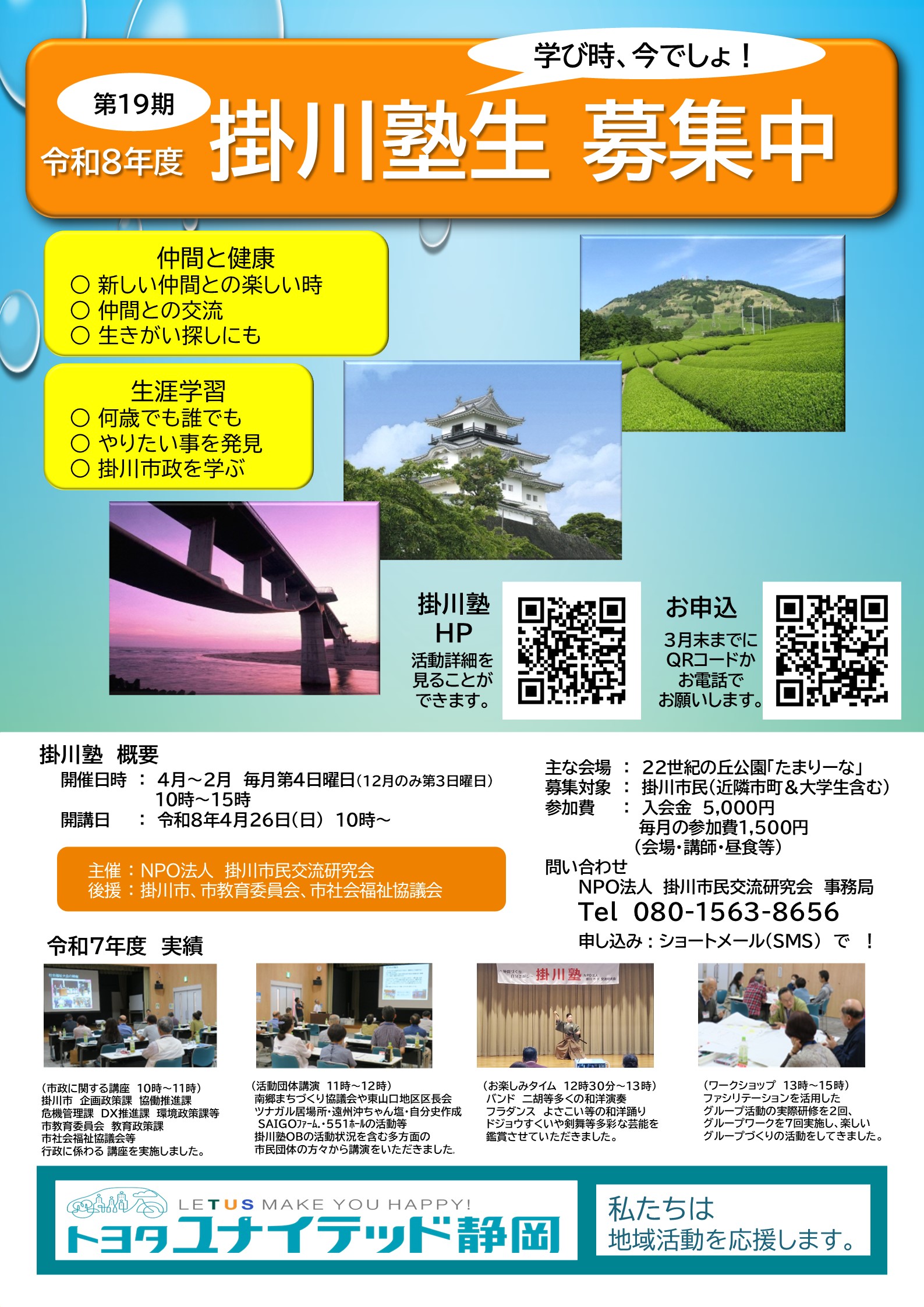 令和2年度「掛川塾」塾生(13期生)の募集を始めました。